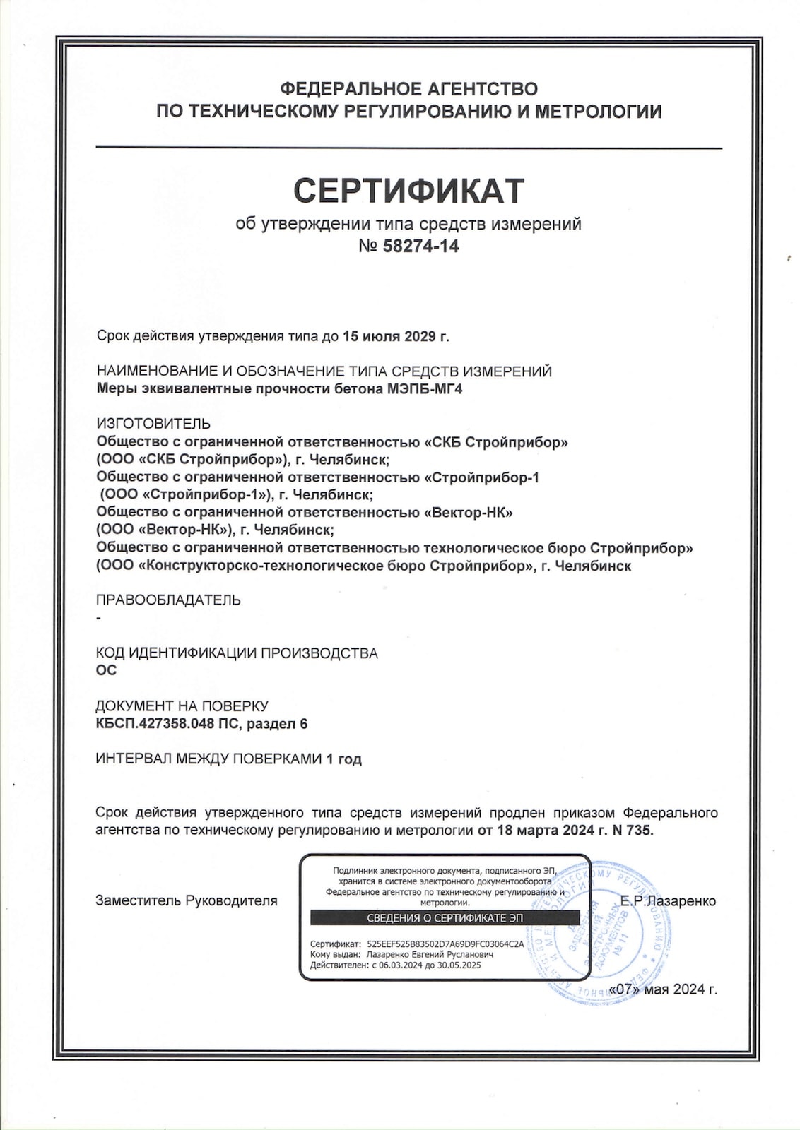 Меры эквивалентные прочности бетона МЭПБ-МГ4 отзывы